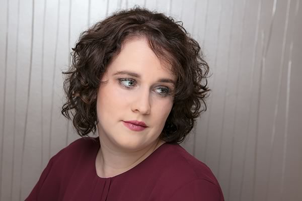 Die leichte Gesichtsrötung im Wangenbereich wurde ausgeglichen und die sehr schönen Augen von Svenja dunkel betont. Das korrespondiert wunderbar mit den Haaren und wirkt auch dann noch gut, wenn Svenja ihre Brille trägt. Um ein harmonisches Gesamtbild zu erreichen, darf die Lippenfarbe entsprechend ruhig etwas kräftiger ausfallen.